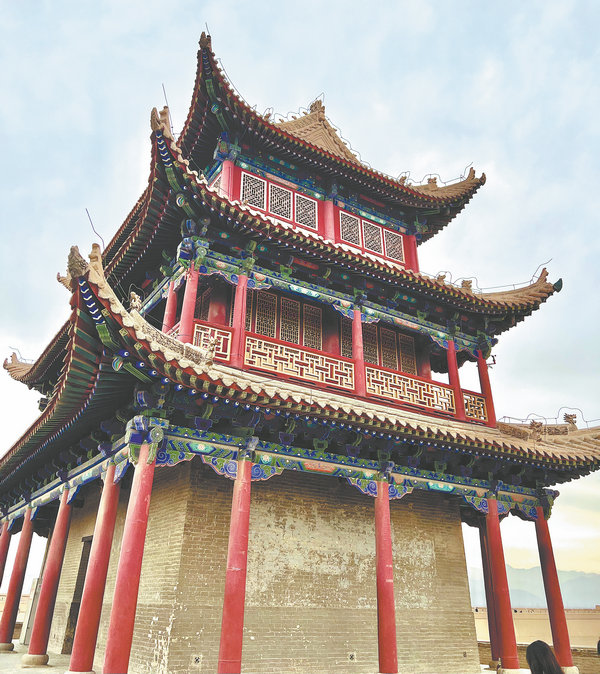 The main pass of Jiayuguan is also known as the First Pass Under Heaven, not only because of its location but also because it hosts resplendent architecture, including grand towers. [Photo by ERIK NILSSON/CHINA DAILY]
