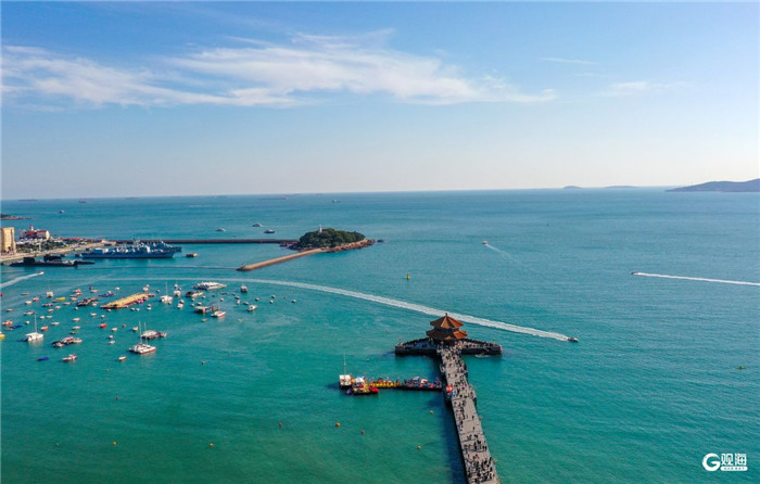 The Zhanqiao Pier, an iconic landmark in Qingdao, winds its way into the bay, connecting the city's skyline to the embrace of the sea. [Photo/Guanhai News]