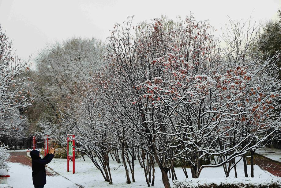 After a snowfall on Sunday morning in Heihe, Heilongjiang province, frost-covered trees and a blanket of snow on the ground transformed the city into a dreamlike fairy tale world. [Photo by Qiu Qilong/For chinadaily.com.cn]