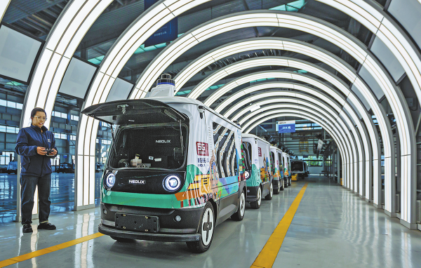 An employee works at a Neolix production facility in Anyang, Henan province, on Nov 5. WANG JIAN'AN/FOR CHINA DAILY