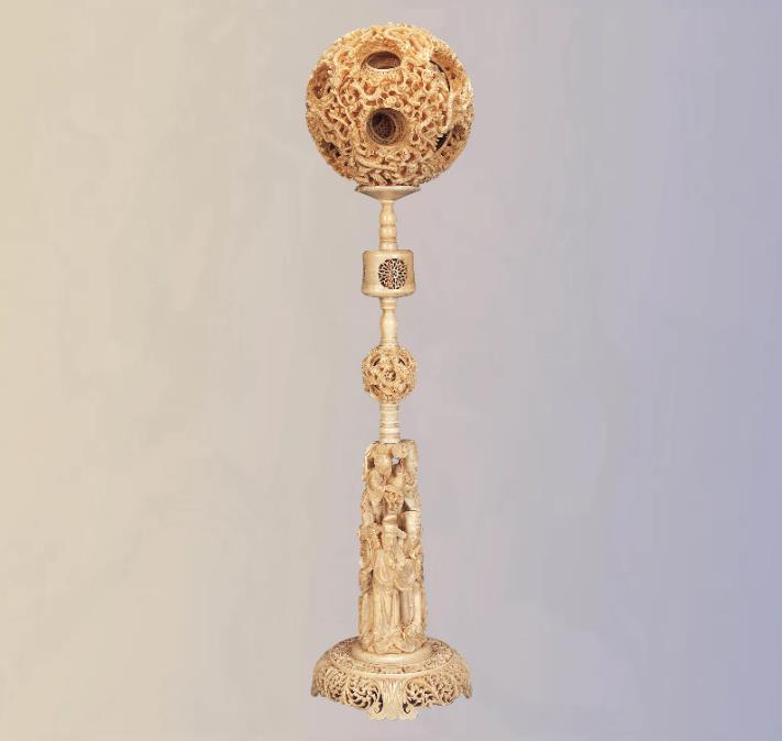 Ivory carved puzzle ball with cloud, dragon and figure motifs, Qing Dynasty [Photo/Liaoning Provincial Museum official WeChat account]
