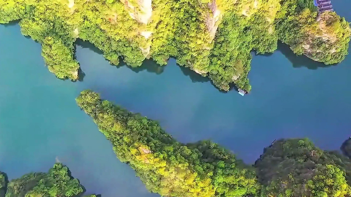 Clear skies unveil autumn splendor at Zhangjiajie's Baofeng Lake