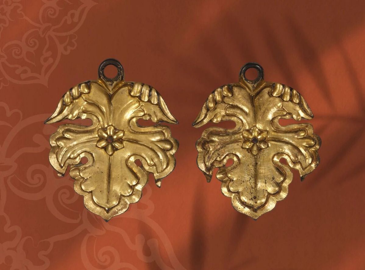 A pair of gilded bronze apricot leaves, Tang Dynasty, from the collection of the Guanfu Museum [Photo/Guanfu Museum official WeChat account]