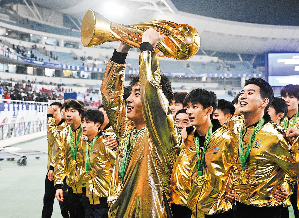 In a thrilling finale witnessed by 62,329 passionate fans at the Nanjing Olympic Sports Center and countless online spectators, the Taizhou soccer team claimed the golden trophy of the 2025 Jiangsu Football City League on Saturday night.