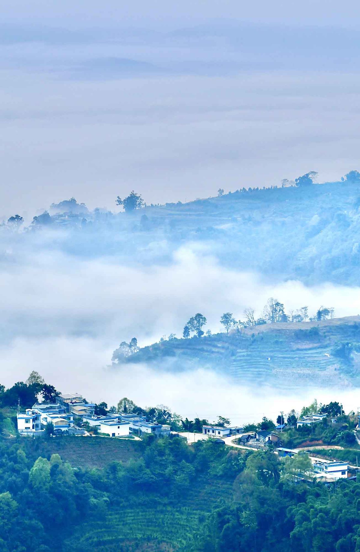 A photo shows the sea of clouds enveloping the tea gardens in Bangdong township of Lincang city, Yunnan province. [Photo by Li Yongge/for chinadaily.com.cn]