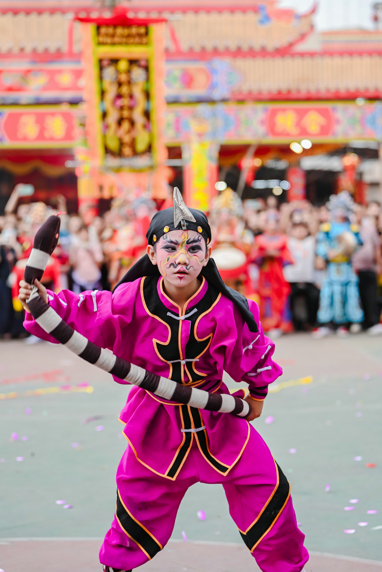 A young performer of Yingge dance in Chendian, Chaonan district of Shantou, South China’s Guangdong province, on Oct 29, 2025. [Photo provided to chinadaily.com.cn]