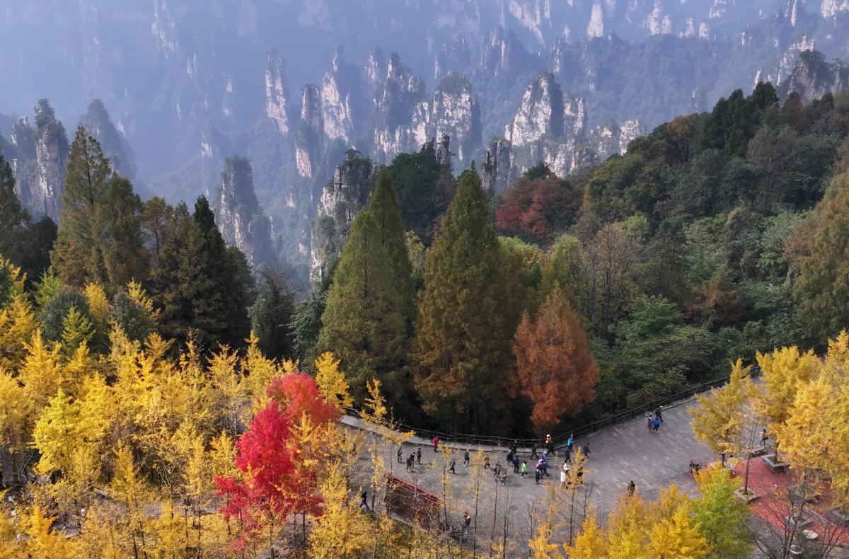 The Tianzi Mountain in Zhangjiajie National Forest Park, Hunan province, transforms into a vibrant tapestry of autumn colors. [Photo by Wu Yongbing/For chinadaily.com.cn]