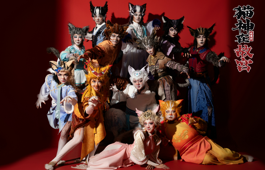A group photo of the main characters of The Cat God in the Forbidden City. [Photo provided to chinadaily.com.cn]
