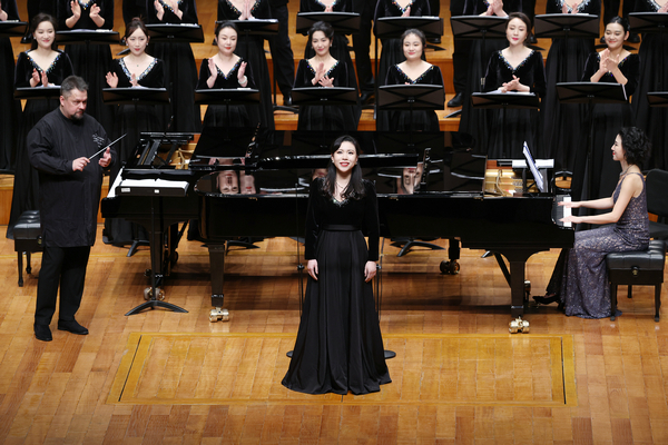 Under the baton of Russian conductor Yevgeny Volkov, the China National Symphony Orchestra Chorus stages a performance on Sunday in Beijing. [Photo provided to chinadaily.com.cn]
