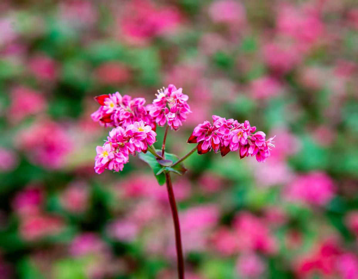 Unlike the more common white buckwheat flowers, these blooms display a distinctive pink-purple hue.