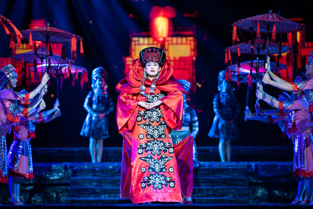 The performance unfolds across four chapters — Sovereign of Heaven and Earth, Bloodbound Alliance, Grand Tour of Prosperity and Love Fills the Youshui River — bringing to life the two-thousand-year-old legends of Furong town. It vividly portrays the Tusi dynasty’s regal aura, the sincerity of its alliances, the joy of prosperous times and the beauty of Tujia folk customs.