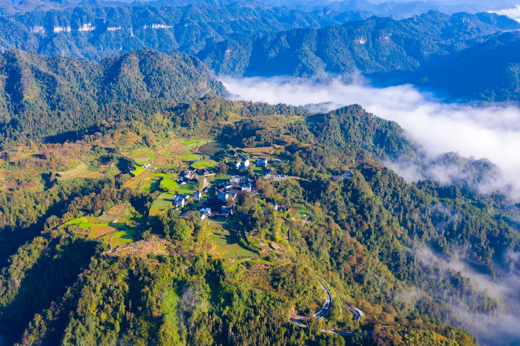 On Thursday, the area around Zhuangjia village in Xiangxi Tujia and Miao autonomous prefecture, Hunan province, was shrouded in mist. The clouds complemented the residential buildings, fields, forests and nearby highway, creating a beautiful early-winter landscape.