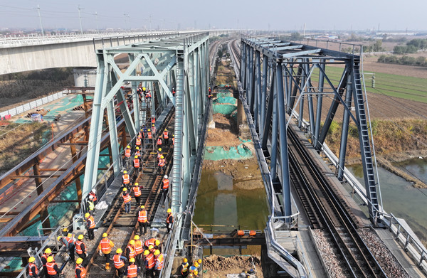 Construction workers from China Railway No 4 Engineering Group (CREC4) completed the renovation on the grand bridge traversing the South Canal in Hebei on Nov 11. The project involved replacing a 65.1-meter steel truss beam and reinforcing the bridge's foundation piles, abutments and pier columns.