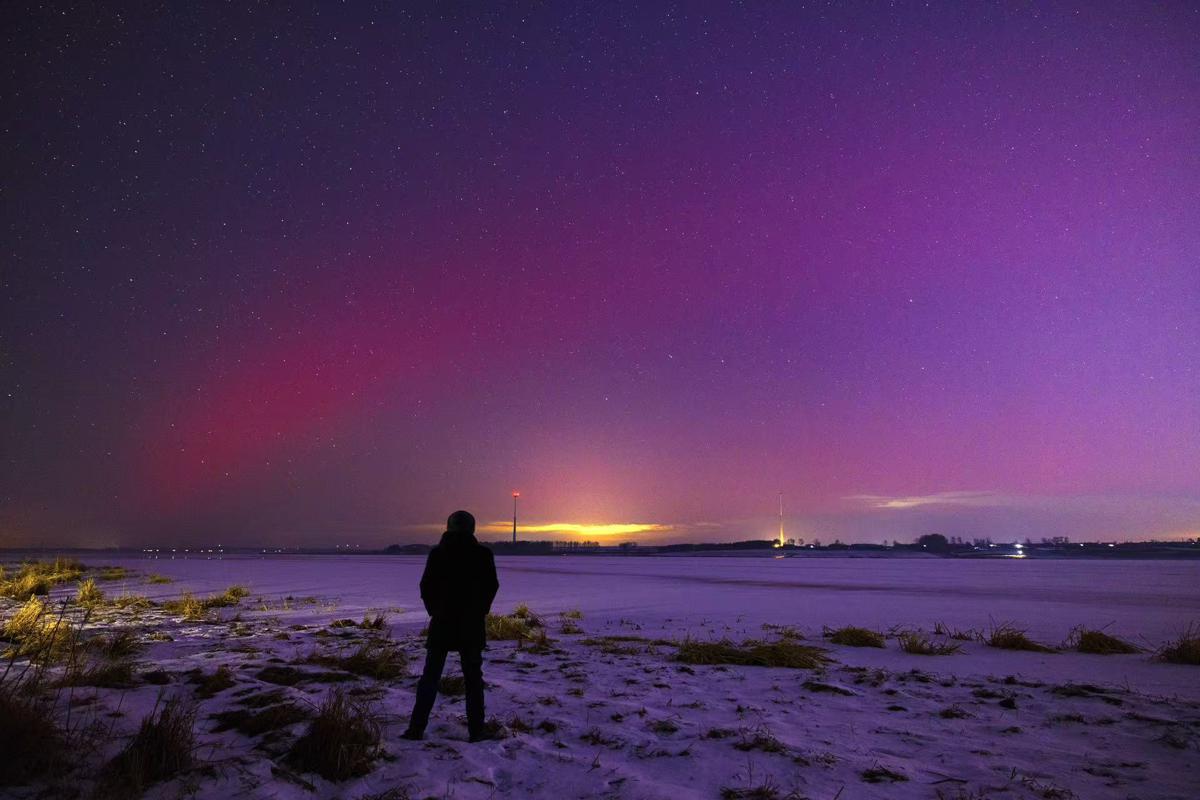 The aurora borealis lights up the sky in Heihe, Heilongjiang province, on Wednesday night. [Photo by Qian Boyu/For chinadaily.com.cn]
