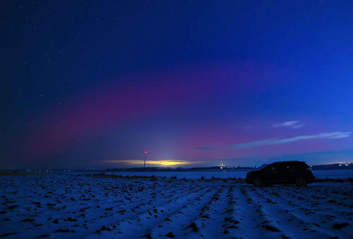 The aurora borealis lights up the sky in Heihe, Heilongjiang province, on Wednesday night. [Photo by Qian Boyu/For chinadaily.com.cn]