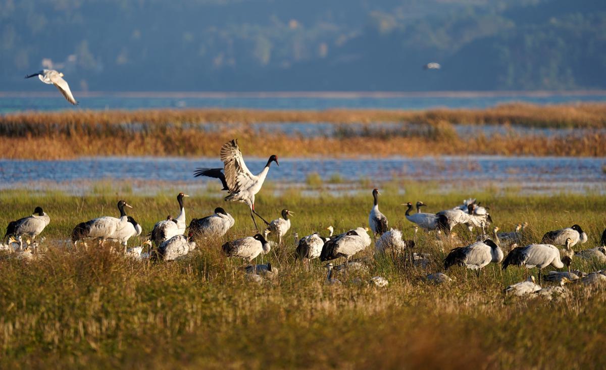 Black-necked cranes return to Guizhou's Caohai reserve for winter