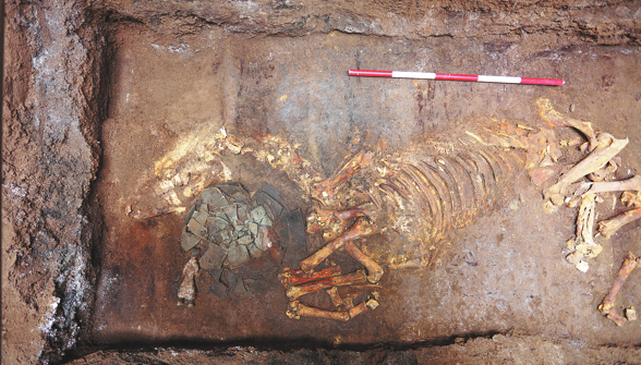 The skeletal remains of a horse are unearthed from the mausoleum of Emperor Wen of the Western Han Dynasty in Xi'an, Shaanxi province. CHINA DAILY