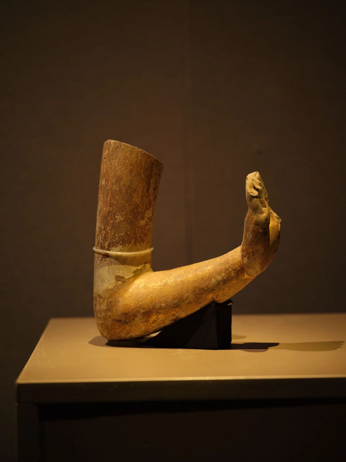 Gilded and painted right arm of a Buddha sculpture, 500-581, from the collection of the Qingzhou Museum [Photo/Hunan Provincial Museum official WeChat account]