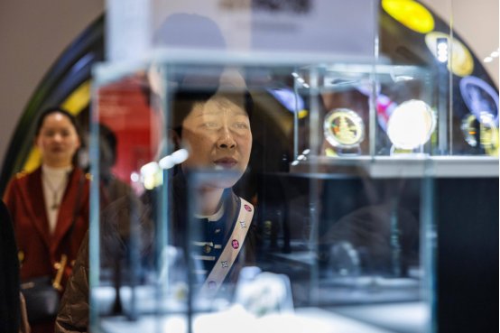 Visitors admire panda-themed precious metal commemorative coins at the Chengdu Museum. [Photo/Chengdu Museum official WeChat account]