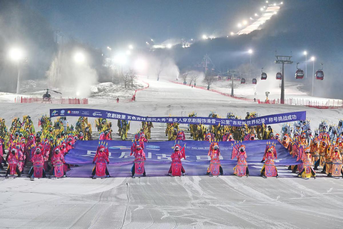 The Songhua Lake Restore received a Guinness World Records certificate for "the most people dressed in Chinese opera costume to complete the same 1 km skiing", on Nov 21, 2025. [Photo provided to chinadaily.com.cn]