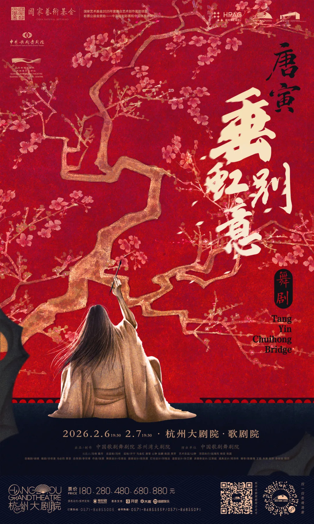 The Hangzhou Grand Theatre will present the dance drama Tang Yin: Chuihong Bridge on Feb 6 and 7, 2026. This production captures the brilliance and sorrow of Tang Yin (1470-1524) — a renowned painter, calligrapher and poet— through expressive choreography. The performance traces his legendary life, showcasing his pursuit of beauty and art with a pure heart, shining through hardship and adversity.