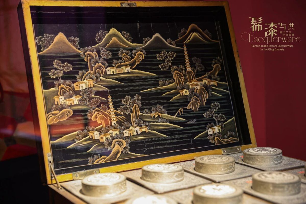 Black-lacquered tea box with landscape motifs in gold tracery, late 18th century to early 19th century, from the collection of the Guangdong Museum [Photo/Guangdong Museum official WeChat account]