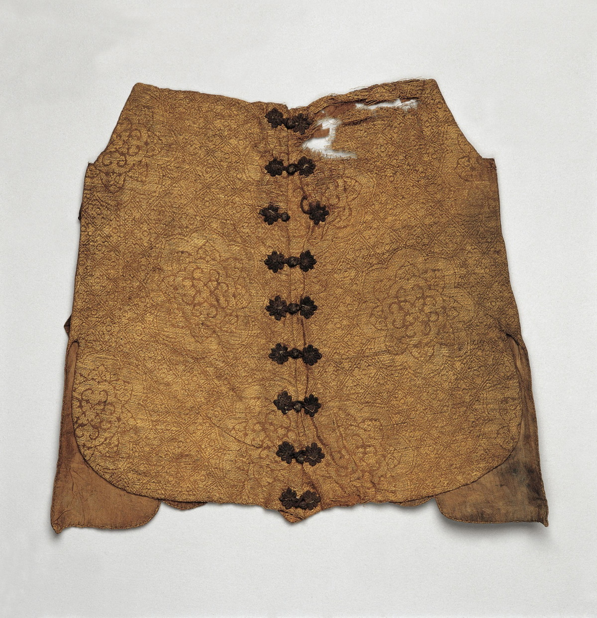 Brocade bodice band (chest wrapper) embroidered with golden thread and floral motifs, Yuan Dynasty (1271-1368), from the collection of the Gansu Provincial Museum [Photo/Chengdu Museum official WeChat account]