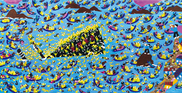 Village artists from Zhoushan, Zhejiang province, make a comeback at the National Art Museum of China in the exhibition The Rural World on the Sea. [Photo provided to chinadaily.com.cn]