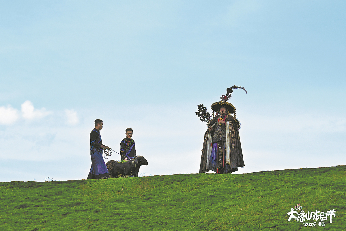 An elderly man of Yi ethnic group leads a black sheep into the square, officially opening the festival.[Photo provided to China Daily]