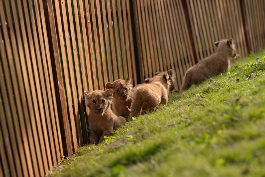 On Wednesday, a rare sunny winter day in Chongqing, five African lion cubs made their debut at Locajoy Theme Park in the city's Yongchuan district under the watchful eyes of their dedicated caretakers. [Photo by Wang Chengjie/For chinadaily.com.cn]
