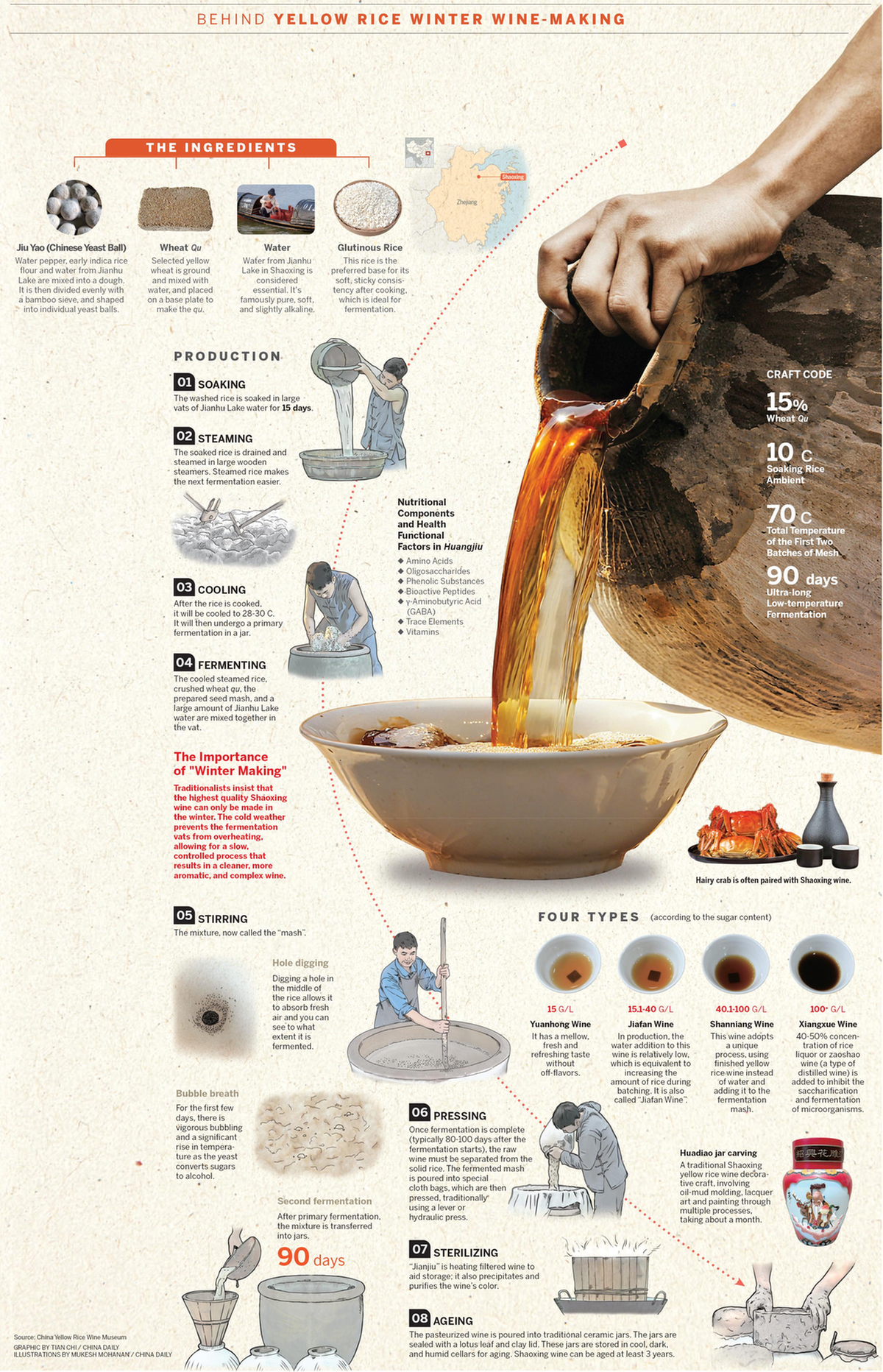 Huangjiu, or yellow rice wine, is a traditional Chinese rice liquor with deep historical roots, particularly associated with the region around Shaoxing in East China's Zhejiang province. This area has been a hub for the production of huangjiu for over 2,500 years.