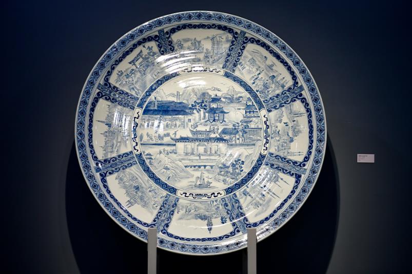 Blue-and-white plate (after the style of Kraak ware) with motifs depicting the Silk Road legend, 248 centimeters in diameter, Hua Cancan, Wang Chu, and Zhang Siya, 2024 [Photo/Jiangxi Art Museum official WeChat account]