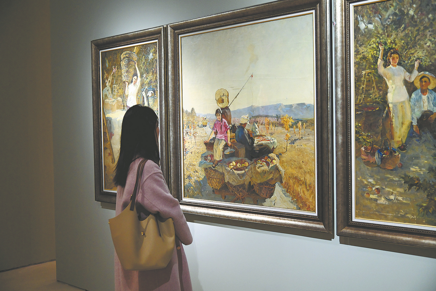 Maksimov's class cultivated students who enriched the public's art vision. One of his students, Jin Shangyi, 91, is known for a series of portraits that elicit a peaceful, meditative atmosphere. The exhibition displays his Climbing Muztagh Ata, which depicts mountaineers on their way to summit Muztagh Ata, a majestic peak in the Xinjiang Uygur autonomous region. This 2.7-meter-tall painting, created in 1957, is an example of Jin's endeavors in realism, long before he formed his individual style.