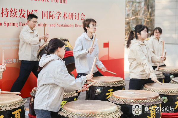 Scholars, representatives from cultural institutions and members who are interested in the revival of cultural traditions attend the Second Spring Festival Culture Forum, held at Beijing Normal University on Sunday. Drum beating, works of handicrafts and creativity products inspired by Spring Festival were all on display. [Photo provided to chinadaily.com.cn]