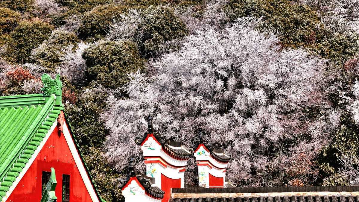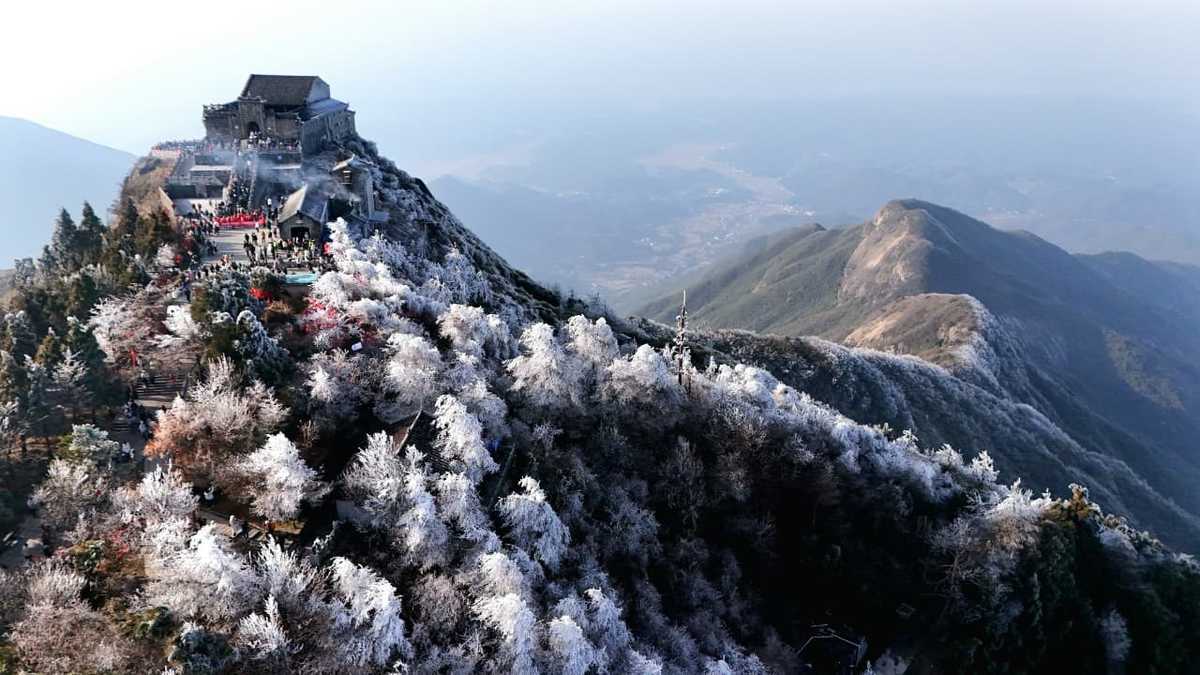 This renowned mountain, also known as Nanyue, frequently showcases trees adorned with crystal ice formations created by the combination of low temperatures and high humidity.