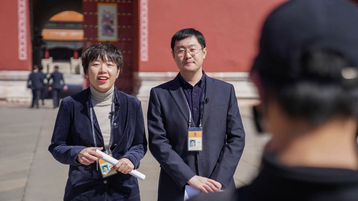 Two Palace Museum staff host an online livestream during the Qingming Festival in 2020. [Photo/Palace Museum official WeChat account]
