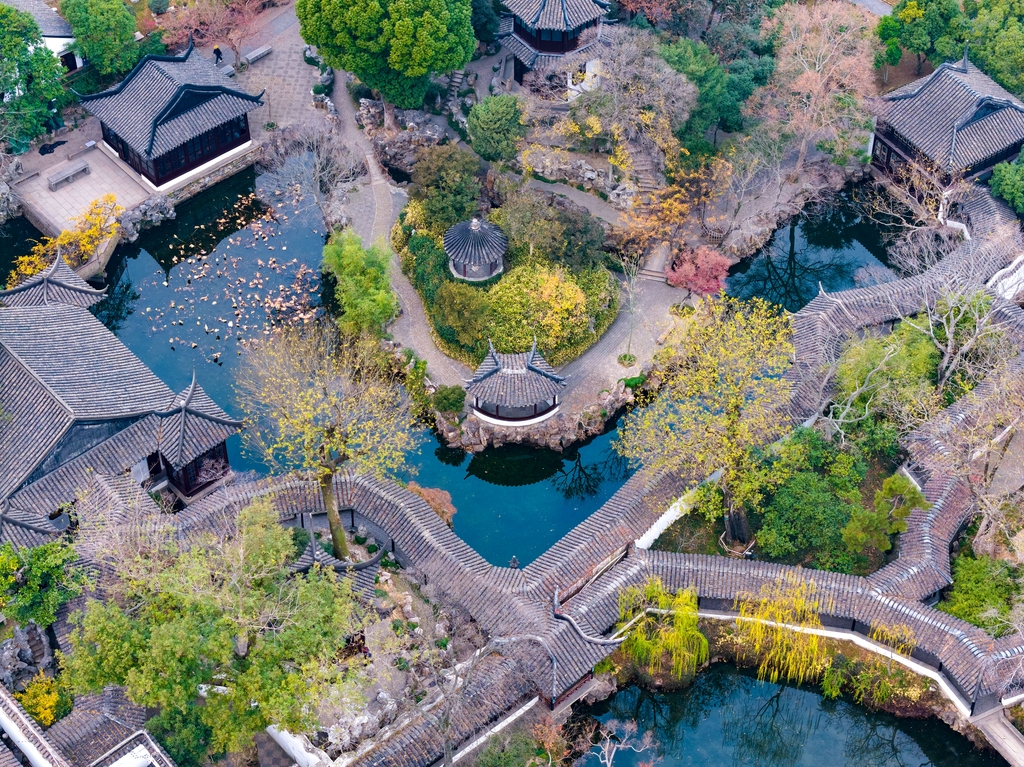 In winter, ancient trees in Suzhou’s Humble Administrator’s Garden are frosted like blossoms. Framed by clear ponds, pavilions, and other classical structures, the scene blends harmoniously into a vivid, colorful ecological tableau.
