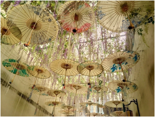 A lane in Sanfang Qixiang district displays paper umbrellas, a local handicraft considered a Fuzhou specialty. [Photo by Elyar Najmehchi for chinadaily.com.cn]