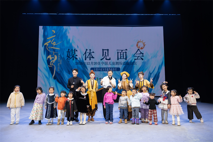 A group of young audience members attend a press conference for the children's musical The Nightingale produced by the China National Theatre for Children in Beijing, on Dec 15, 2025. [Photo provided to chinadaily.com.cn]