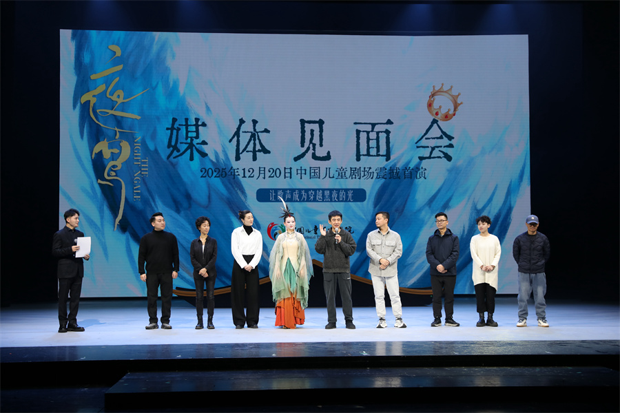 Creators of the children's musical The Nightingale produced by the China National Theatre for Children share the creative process during a press conference in Beijing, on Dec 15, 2025. [Photo provided to chinadaily.com.cn]
