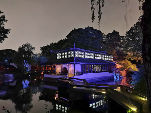 As night falls in the Humble Administrator's Garden, the largest among the 108 sites, soft light and a melody imbued with a sense of antiquity combine to evoke a memory of ancient literati, under a silvery moon.