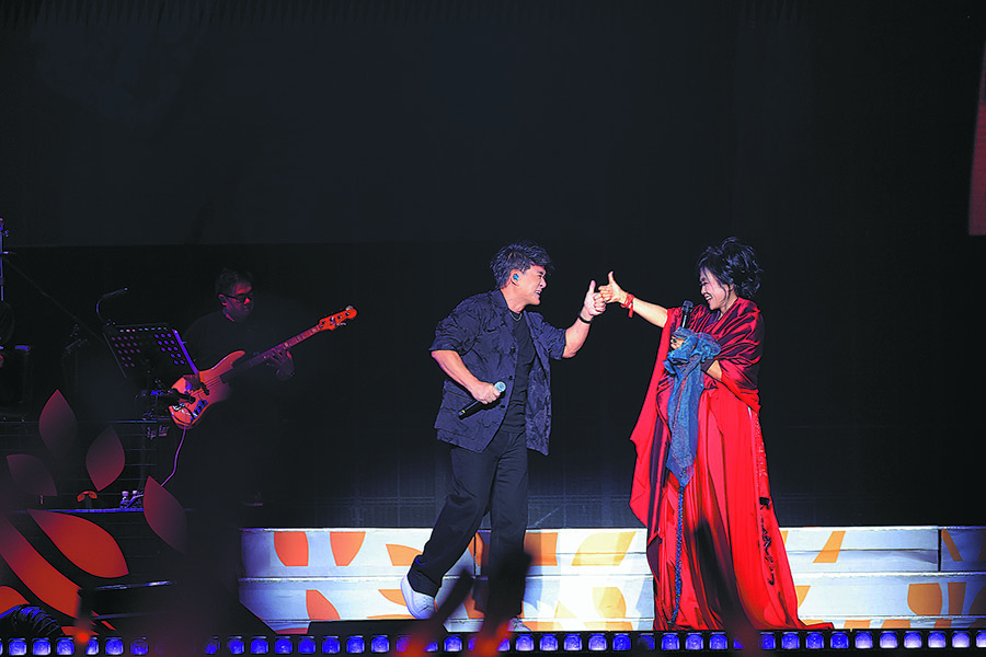 Chyi performs with Hong Kong singer Emil Wakin Chau in August at the Shanghai stop of her recent tour