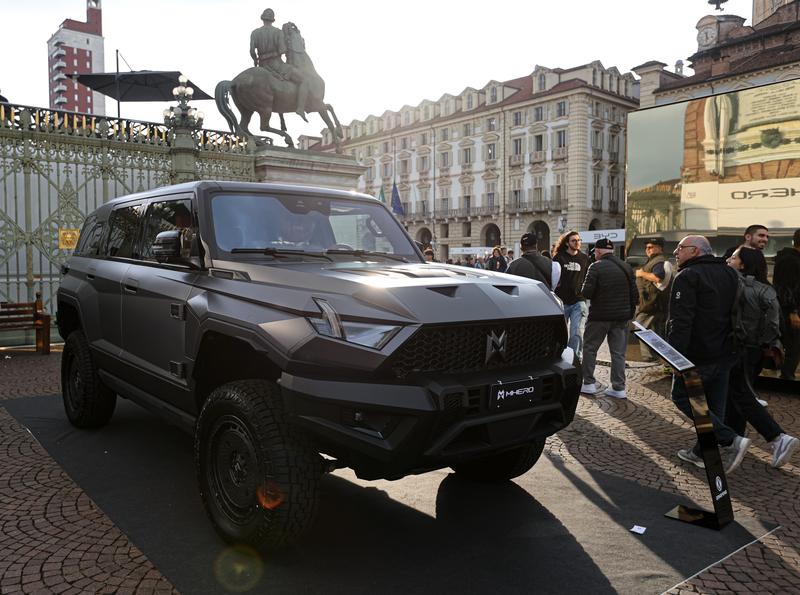 Visitors view an exhibit car of M-HERO under Chinese automaker Dongfeng during the 2025 Turin Auto Show in Turin, Italy, Sept 26, 2025. [Photo/Xinhua]