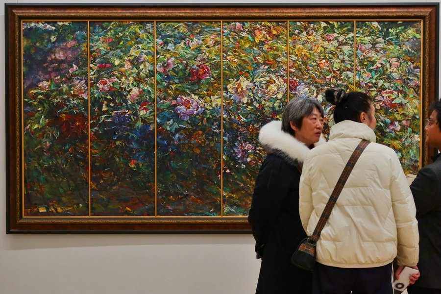 Zhao Yitang's vivid paintings deliver a sense of rhythm, while his calligraphy shows his dedication to lishu over time. [Photo by Jiang Dong/chinadaily.com.cn]