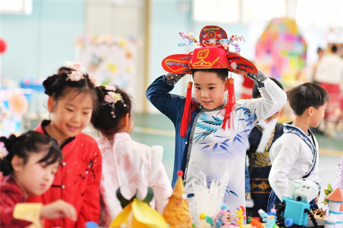 At a primary school in Qingdao, students recently took part in a vibrant display of traditional Chinese culture. Guided by their teachers, children immersed themselves in the beauty of intangible cultural heritage by learning and creating various traditional crafts.