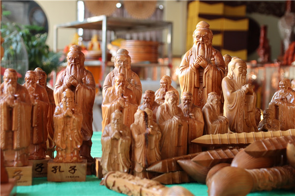 In the peach wood workshop of Feicheng city, Tai'an in Shandong province, a wide array of peach wood carvings feature unique shapes and intricate designs.