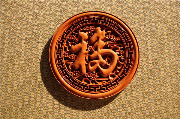 The intricate carvings on these peach wood artworks depict traditional symbols of good fortune, showing the profound cultural heritage of the region. [Photo/Xuexi Qiangguo app]