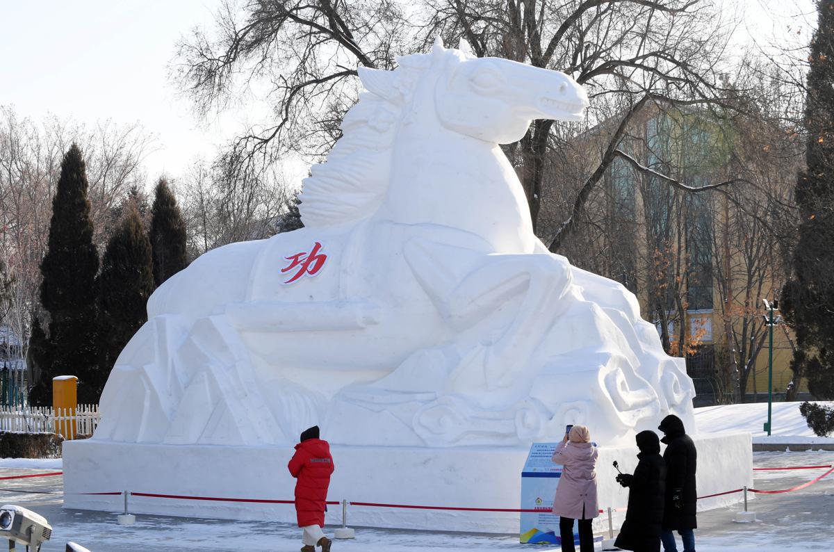 The 38th Sun Island International Snow Sculpture Art Expo began its trial operation on Saturday at Sun Island Park in Harbin, Heilongjiang province. [Photo by Liu Yang/For chinadaily.com.cn]