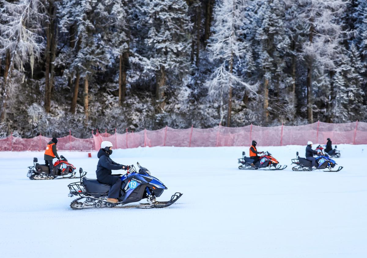 People enjoy winter sports on Monday at the opening ceremony of the 8th Sichuan National Fitness Ice and Snow Season at the Bipenggou ice and snow park in Lixian county, Aba Tibetan and Qiang autonomous prefecture, Sichuan province. [Photo provided to chinadaily.com.cn]