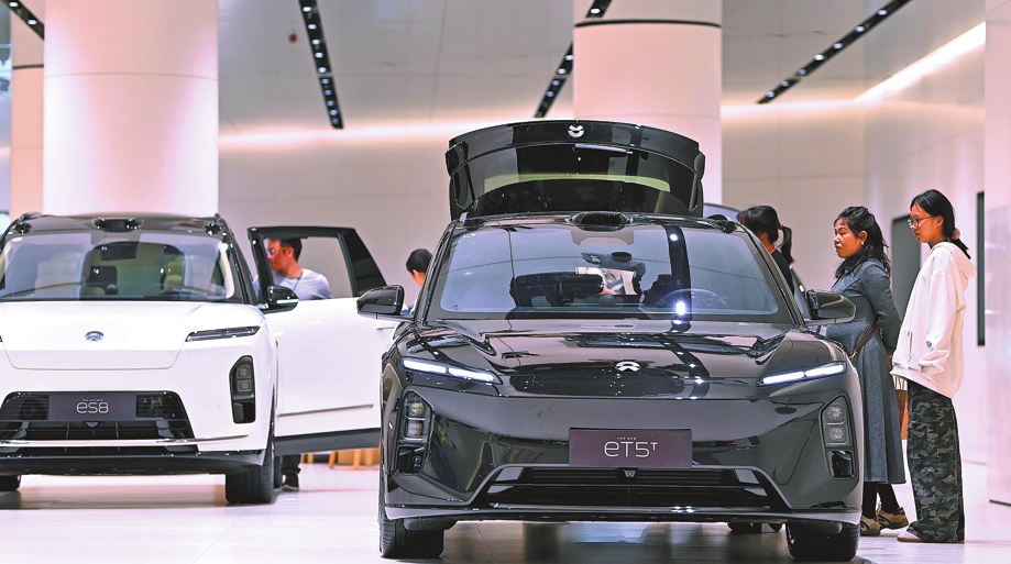 Potential car buyers look at vehicles offering trade-in subsidies at a market in Nanchang, Jiangxi province. ZHU HAIPENG/FOR CHINA DAILY